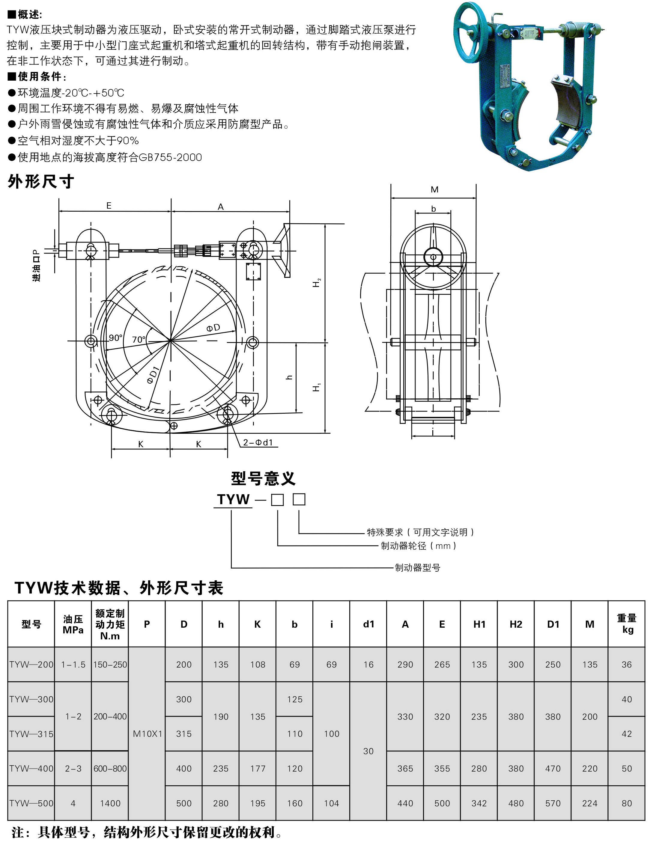 TYWZ2系列腳踏液壓鼓式制動(dòng)器