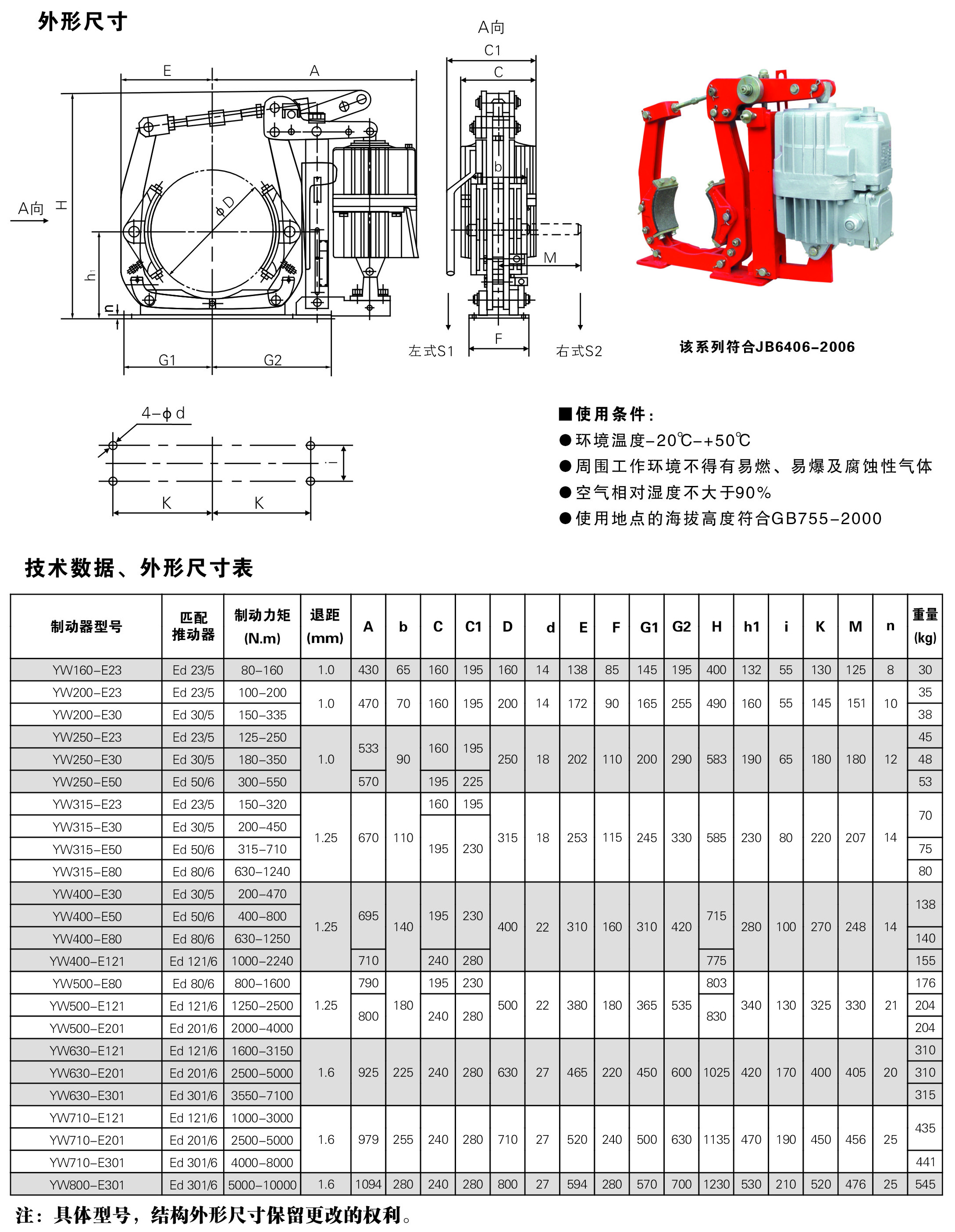 制動(dòng)器安裝尺寸和制動(dòng)力矩參數(shù):GB6333-86標(biāo)準(zhǔn),技術(shù)要求符合JB/T6406-2006標(biāo)準(zhǔn)。